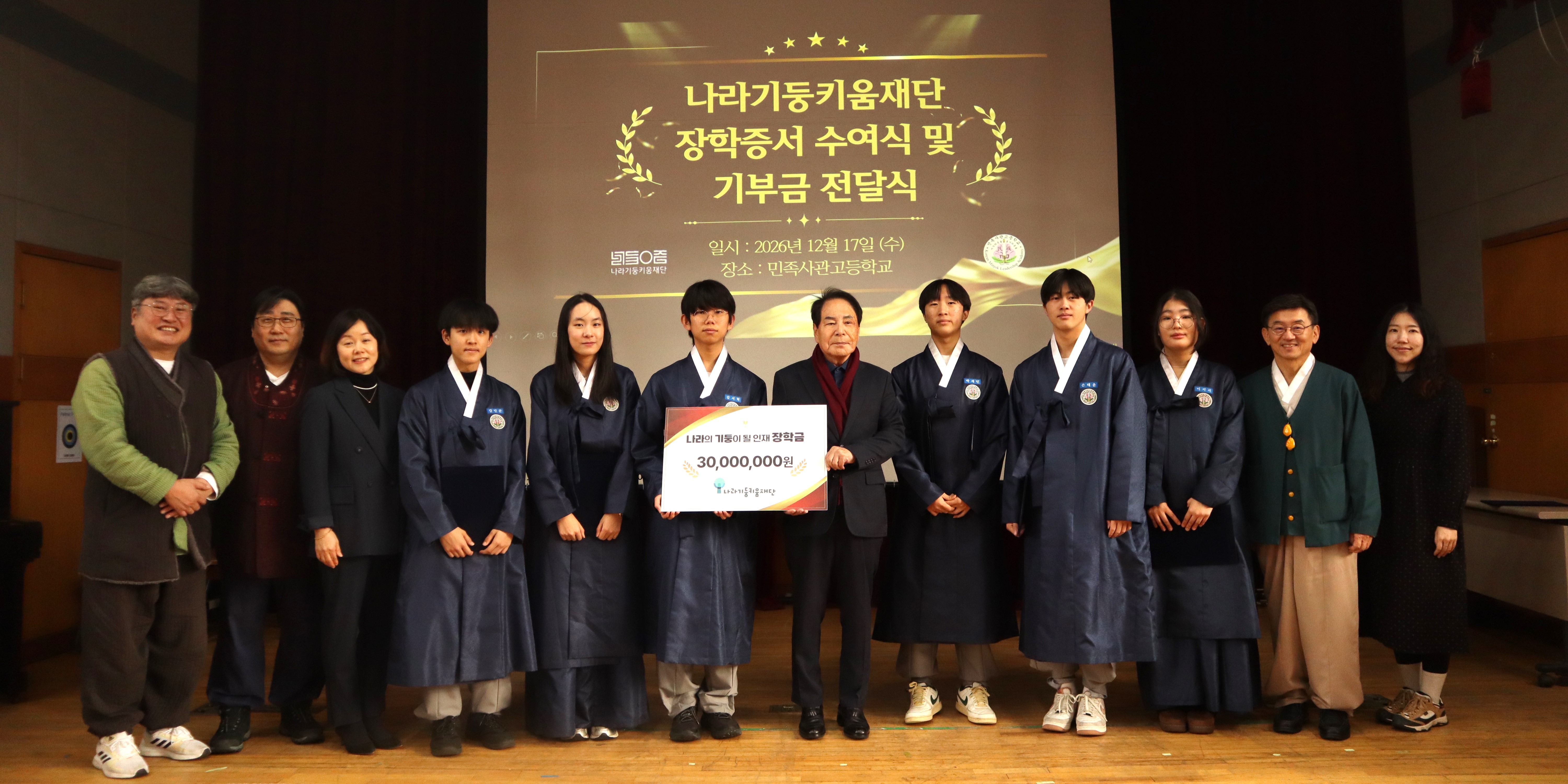 민족사관고등학교(강원도 횡성 소재)에서 나라의 빛과 기둥이 될 인재를 선발하여 장학 증서를